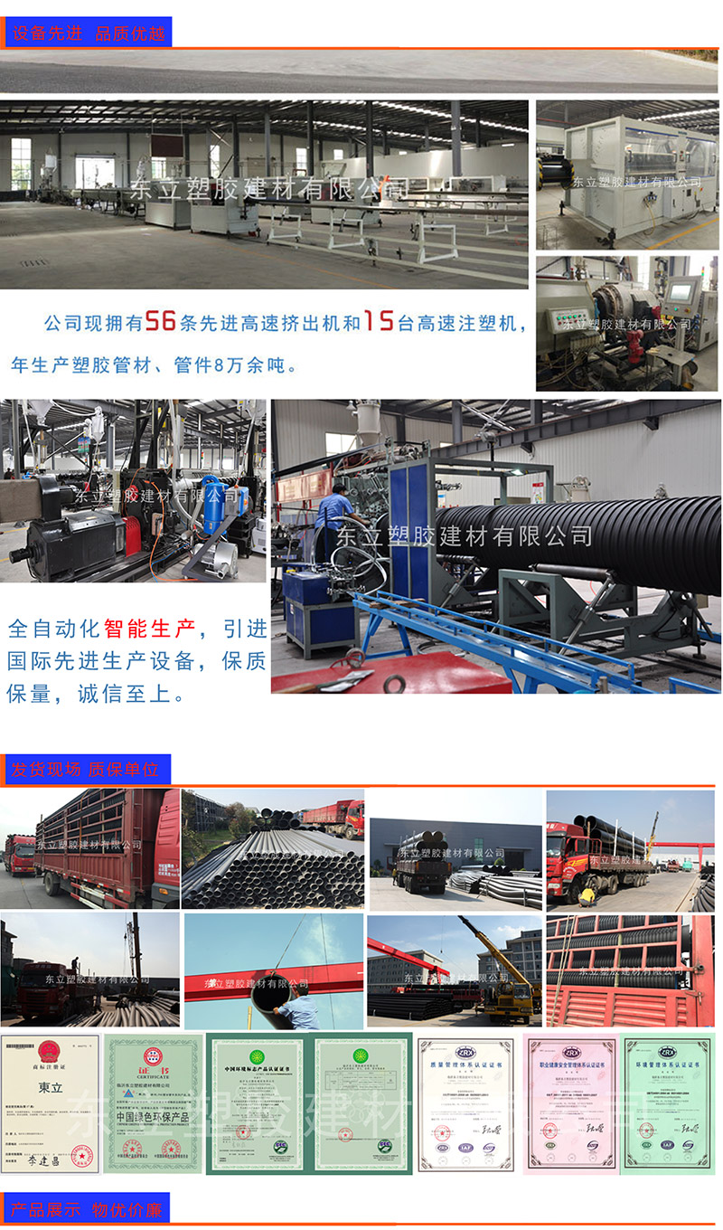 東立牌PVC環保管材、管件系列產品嚴格按照GB/T10002.1-2006及GB/T10002.2-2003標準生產,采用有機錫綠色環保配方,衛生性能完全符合GB/T17219-1998標準要求及國家衛生部相關的衛生安全評價規定. 產品最新優惠價格您可撥打0539-8854811或17705399608了解。